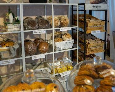 Ihania pullia ja wienereitä sekä pikkuleipiä. Ruokaleipiä sekä täytettyjä voileipiä. Muuten erittäin hieno konditoria-leipomomyymälä, mutta vegaaneille ei tarjontaa.