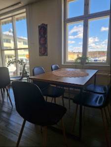 Tällä yrityksellä on erillinen istumapaikka, missä voit nauttia ruokien kanssa.