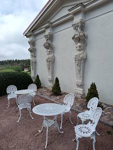 Tarjolla oli peruskahvilatarjooman lisäksi myös runsaannäköinen lounasbuffet, tilan omia tuotteita ja lähistön käsityöläisten tekeleitä. Tilava kartanon ulkorakennukseen perustettu kahvila hienossa miljöössä, kaikkiaan kiva paikka.