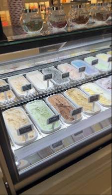 - Laaja jäätelövalikoima: Kahvila tarjoaa laajan valikoiman jäätelöitä eri makuja ja ainesosia.