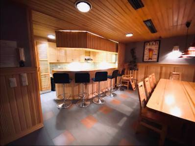 Muut mielenkiintoiset tiedot: Ruokailu paikan päällä, Noutoruoka, Hyvää kahvia, Takka, Esteetön pysäköintialue, Esteetön wc, Alkoholia, Kahvia, Olutta, Sauna, Viiniä, Yksityiskabinetti, WC, Wi-Fi, Wi-Fi, Rauhallinen, Rento, Viihtyisä, HLBTQ+-ystävällinen, Ryhmät, Sopii perheille, Varaus vaaditaan, Ottaa vastaan varauksia, Credit-kortit, Debit-kortit, Maksuton kadunvarsipysäköinti, Maksuton pysäköintialue.
