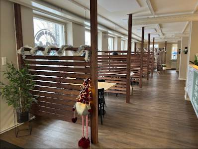 Muut mielenkiintoiset tiedot: Toimitus ilman kontaktia, Kotiinkuljetus, Palvelua paikan päällä, Noutoruoka, Ruokailu paikan päällä, Lounaspaikka, Illallispaikka, Yksin ruokailu, Esteetön wc, Esteetön sisäänkäynti, Alkoholia, Kahvia, Myöhäisillan aterioita, Olutta, Ruokaa nopeasti, Lounas, Illallinen, Tilaus tiskiltä, Istumapaikat, WC, Laadukas, Rauhallinen, Rento, Trendikäs, Viihtyisä, Opiskelijoita, Ryhmät, Turistit, Ottaa vastaan varauksia, Credit-kortit, Debit-kortit, NFC-mobiilimaksaminen, Luottokortit, Lasten ruokalista, Sopii lapsille, Syöttötuolit, Maksullinen kadunvarsipysäköinti, Maksullinen pysäköintialue, Pysäköinti.