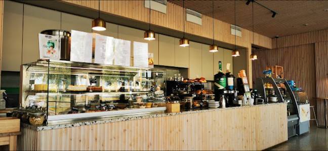 - Esteettömyys: Kahvila on suunniteltu huomioimaan kaikkien tarpeet, tarjoten esteettömän pysäköintialueen, sisäänkäynnin ja wc:n.