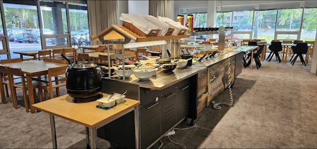 Muut mielenkiintoiset tiedot: Ruokailu paikan päällä, Lounaspaikka, Yksin ruokailu, Esteettömiä istumapaikkoja, Esteetön wc, Kahvia, Lounas, Jälkiruoka, WC, Laadukas, Rento, Ryhmät.