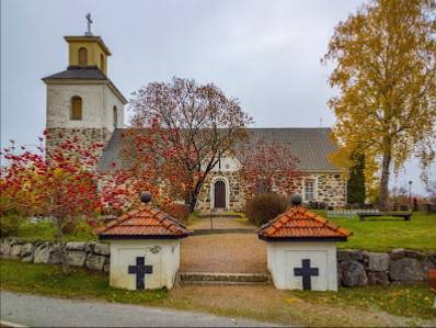 Nätti pieni kirkko. Upea musta kaarikatto ja joustavat asenntoa vaihtavat puupenkit,eli asennnon vaihdosmukav ei paikat puunnu 2 tunnin kirkkomessussa aikana.