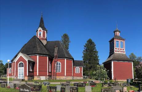 Kaunis puukirkko vanhan hautausmaan ympäröimänä. Perinteinen ja valitettavasti yhä harvinaiaemmaksi käyvä.
