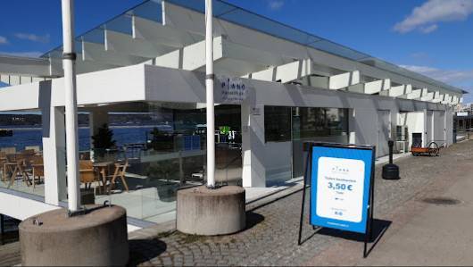 Hieno homma, maisema kohdallaan! On muuten sataman ylivoimaisesti paras paikka hörpätä kahvit - normaalit tai erikoisempaa... Tai kuplivaa... Valikoimaa löytyy...