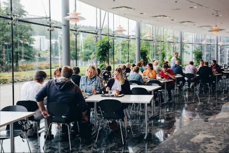 Hyvin rauhallinen ja avara. Vierailija sai santsia ruokaa. Paljon nuorisoa. Asiallinen ilmapiiri. Siistit wc-tilat ja käsidesiä. Aulassa mahdollisesti jotakin markkinointia.