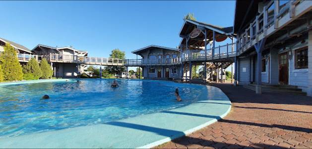Yövyimme siistissä ja viihtyisässä puumajassa huvipuistovierailun yhteydessä. Mökissä oli ilmalämpöpumppu, WC, jääkaappi ja TV. Neljä henkilöä mahtuu kerrossänkyihin. Sopiva majoitus perheelle tai kaveriporukalle. Suihkutilat (saunoineen) oli käytettävissä viereisen altaan yhteydessä. Altaan vesi oli kylmää (joskin hyvin virkistävää) ja altaan reunat kaltevat, jopa vaarallisen liukkaat. Outo ratkaisu toteuttaa reunat kauttaaltaan noin. Altaalla oli myös laituri, josta nuoriso hyppeli kielloista huolimatta veteen. Aamupala oli välttävä perussetti, ei mitään ihmeellistä, aamupalahuoneen sisustus suoraan 80-luvulta; kömpelöt tuolit liikuteltaviksi kokolattiamatolla. Vierailu oli kuitenkin hyvin onnistunut kokonaisuutena!