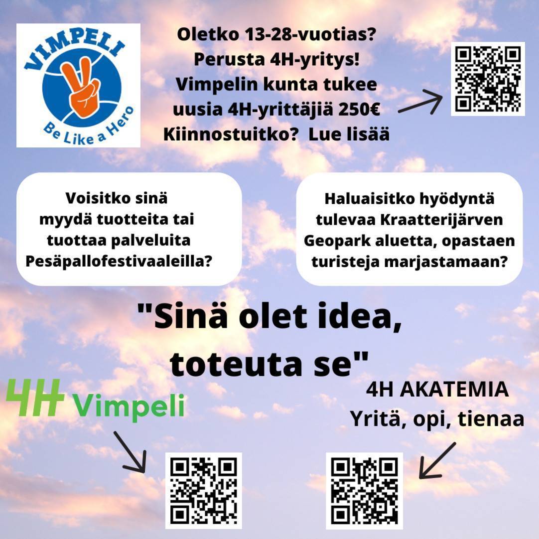 Vimpelin 4H-Yhdistys R.Y. on aktiivinen 4H-liitto, joka toimii Vimpelin kunnassa. Se on perustettu vuonna 1951, ja sen tavoitteena on tukea maaseudun nuoria ja edistÀÀ maatilaharrastuksia. Yhdistys tarjoaa monia erilaisia toimintoja ja aktiviteetteja, jotka sopivat sekÀ lapsille ettÀ aikuisille.